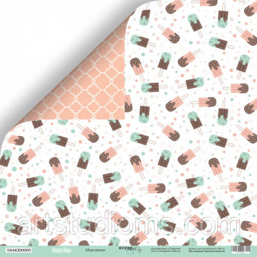 Аркуш двостороннього паперу 30x30 від Scrapmir Морозиво з колекції Happy Days